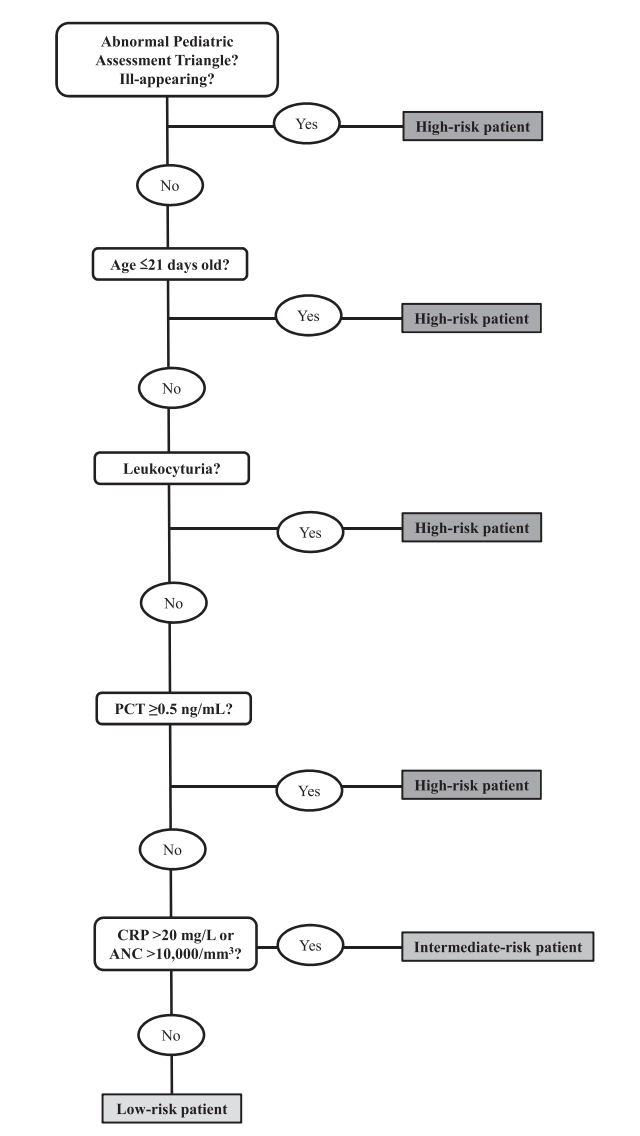 Intervention: Risk stratification via the “Step by step” approach to identify the level of risk for invasive bacterial infection.
